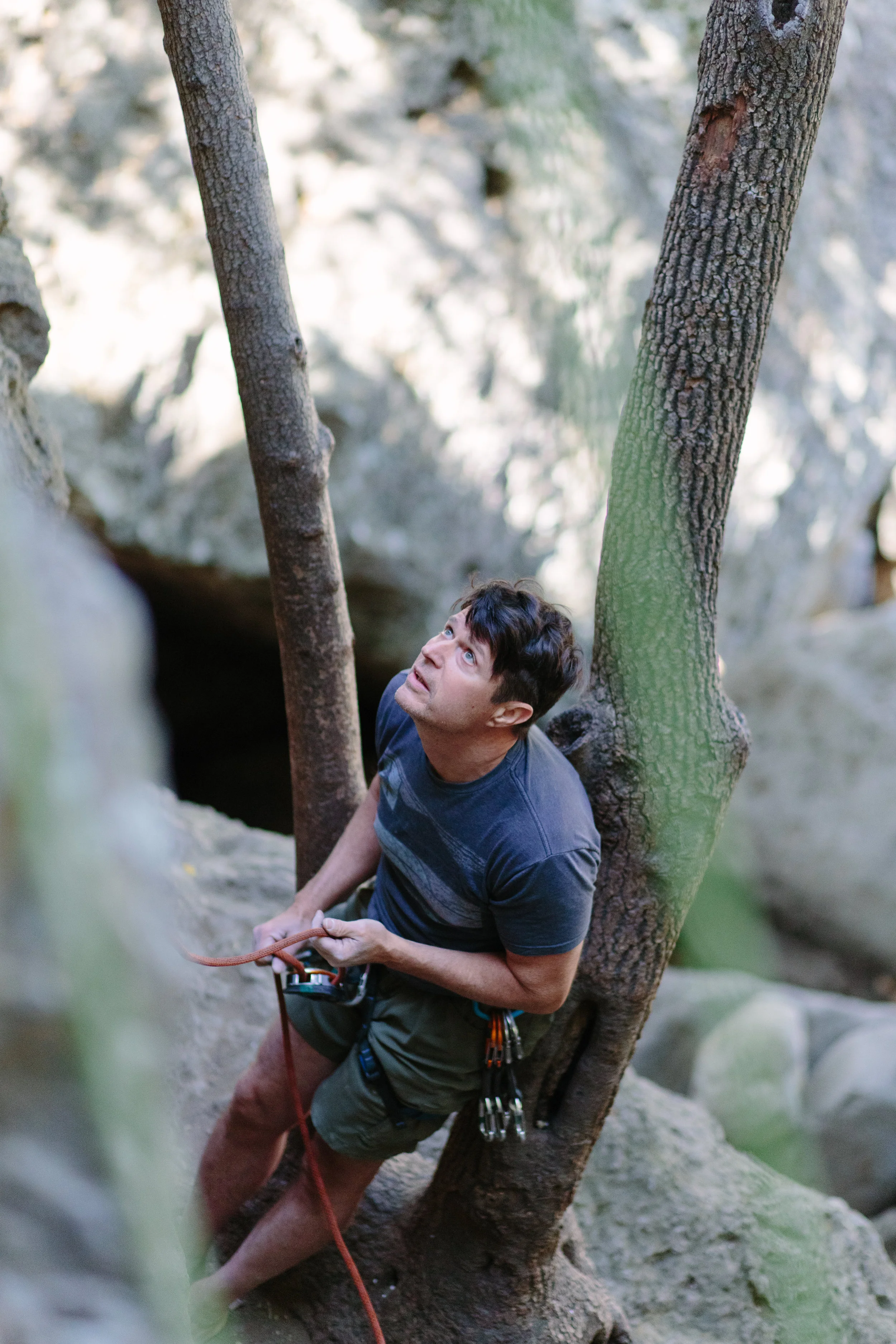 I still get scared when I climb. Granted, I haven’t climbed all that many times, despite being surrounded by it for a while now...But still, the fear remains. Though it has gotten easier. I wrote about this fear and how photography helps push me through it in an Outdoor Women’s Alliance article. I’ve come a long way since that trip to Joshua Tree. This past weekend I faced a major hurdle that I once opted out of: The Malibu Creek Traverse. (dun dun dun). It is a traverse that I watched my friends and Jared Leto cross with effortless ease. Ya, no, really the actual Jared Leto. The successful actor and 30 Seconds to Mars frontman, now turned avid climber and buddies with Alex Honnold and whoever the hell else he wants to be friends with. From the safety of a land boulder, I took a (very bad) picture of him and Traci waving to me from the traverse flanked by stagnant water that translates into lava in my brain.